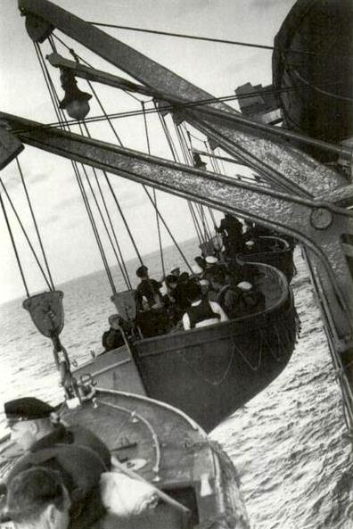 Am 14. Dezember fuhren wir los, grau angestrichen ohne Licht. Wir schliefen in Kleidern, rechts die Schwimmweste, links eine zusam-mengerollte Decke. Es war ein genauer Wachdienst ausgearbeitet worden. Im C-Deck schliefen nur noch die Ingenieure, der Arzt der Heilgehilfe und ich, alle übrigen auf Matratzen auf dem Bootsdeck"6