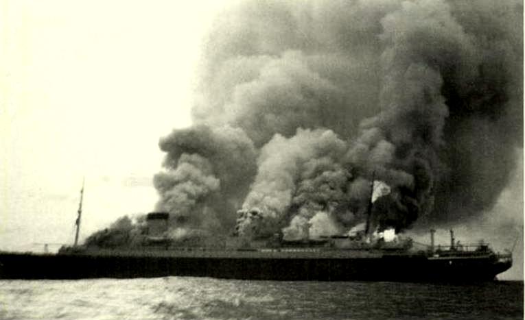 Beim Verlassen der ColumbusKaum hatten sie das Schiff verlassen, stiegen dort schon große Flammen auf - auf Befehl in Brand gesetzt vom Feuerstoßtrupp der eigenen Mannschaft.
