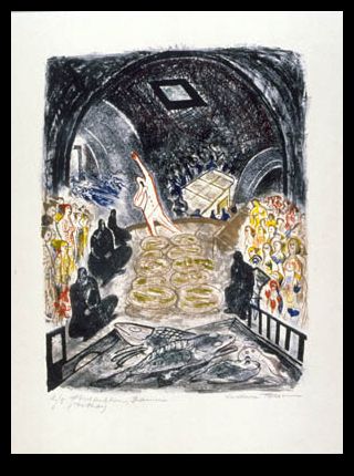 Fischauktion, Spanien Palamos an der Costa Brava,Lithographie, Großstadt Lithografie, Großstadtgötze,Holzschnitt