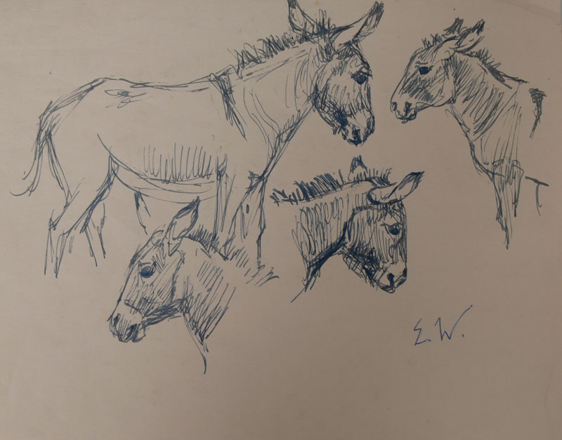 Während und nach dem Kriege tauschte sie Bilder von Hühnern, Pferden und auch Porträts gegen Lebensmittel ein.