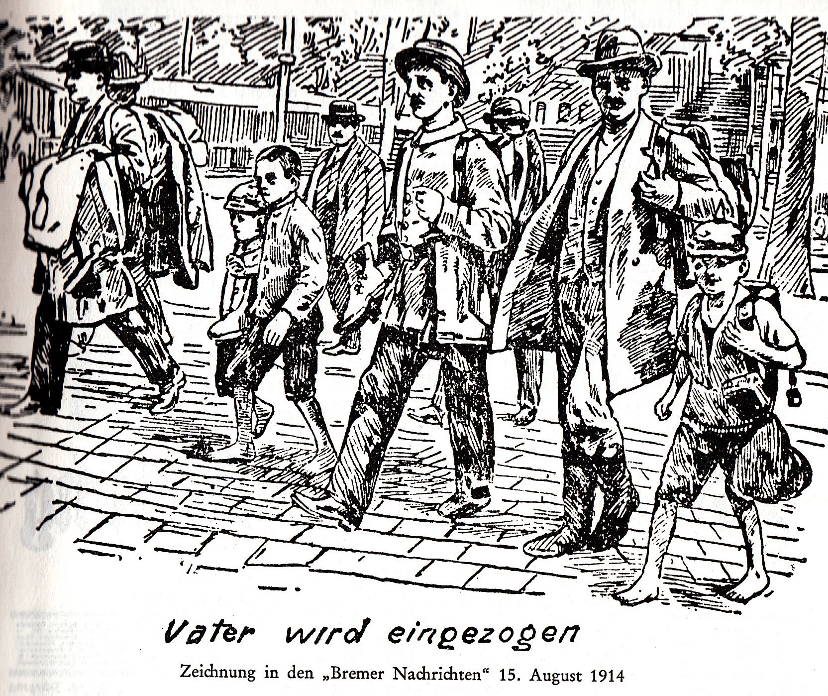 Mobilmachung betraf nicht nur die einrückenden Krieger, sondern auch die Hausfrauen. Deren "Mobilmachung für die Kriegszeit im besonderen" lag dem Bremer Hausfrauenverein am Herzen, der durch spezielle Kochkurse und Kriegsrezepte dazu beitragen wollte.